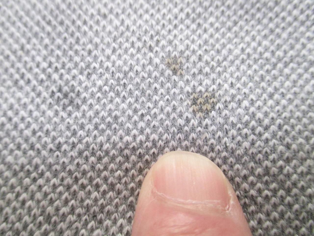 全体にユーズド感あり、左胸や腹部にシミが見られますが、