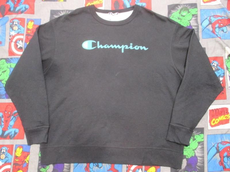 チャンピオンの黒のロゴプリントスウェットシャツです。